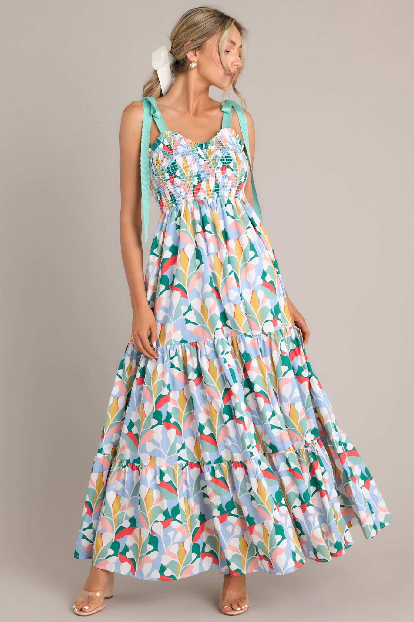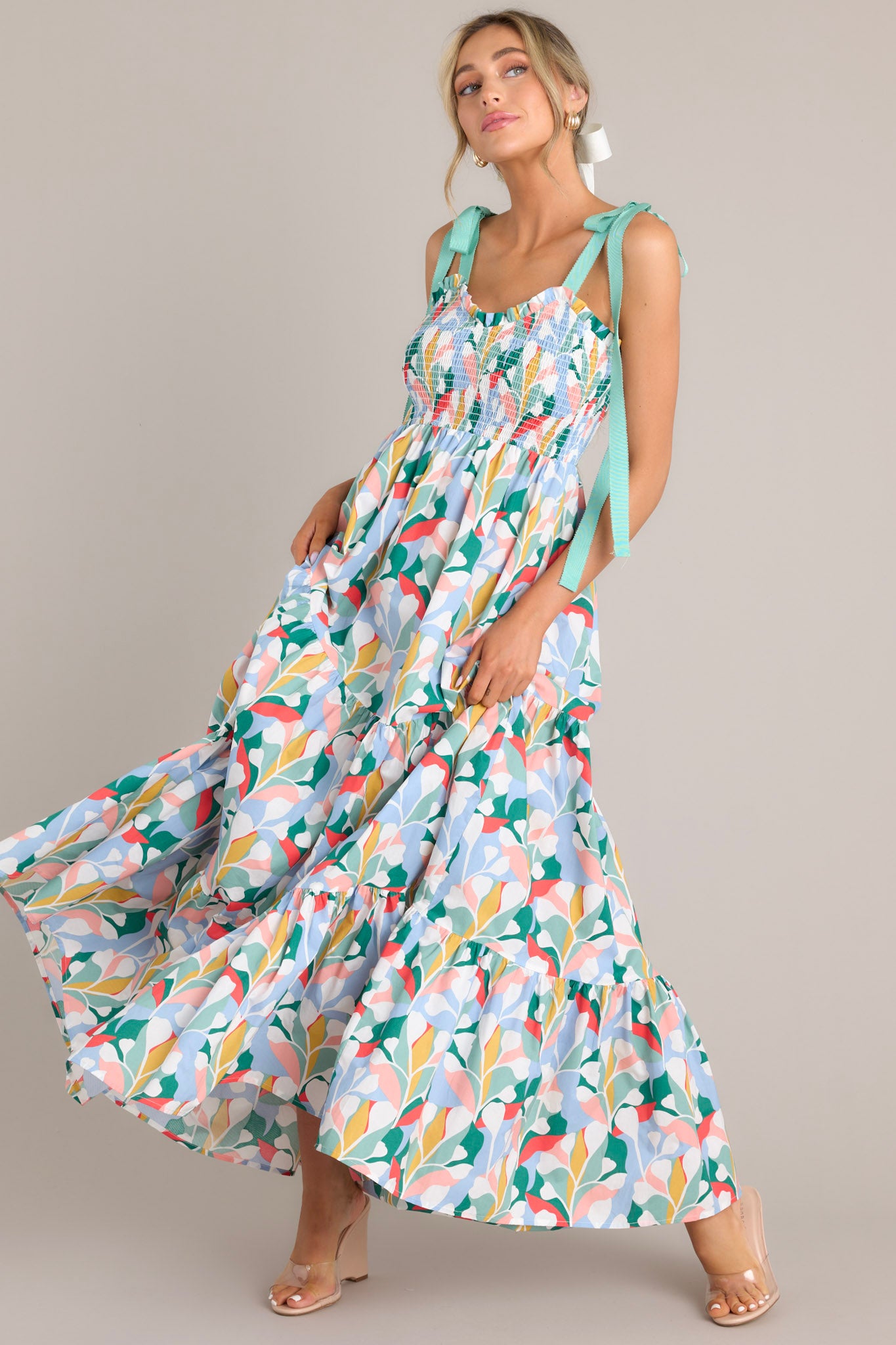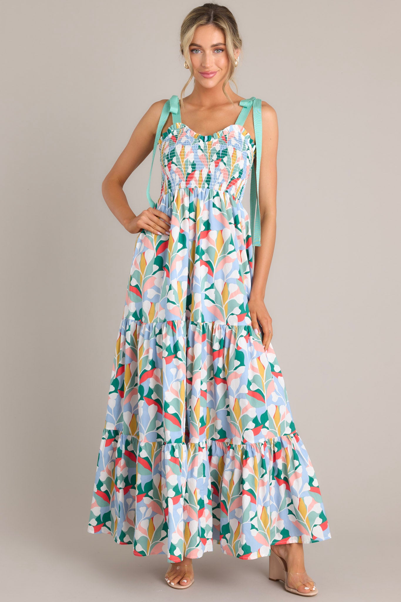 This Wishing For You Sky Blue Maxi Dress is sure to make you swoon - and twirl! Its exciting hue of blue is a showstopper and will have you looking fashion-forward and out-of-this-world stylish. This cotton dress features a sweetheart neckline with ruffle detailing, adjustable self-tie shoulder straps, a smocked bodice, and a long, tiered skirt.