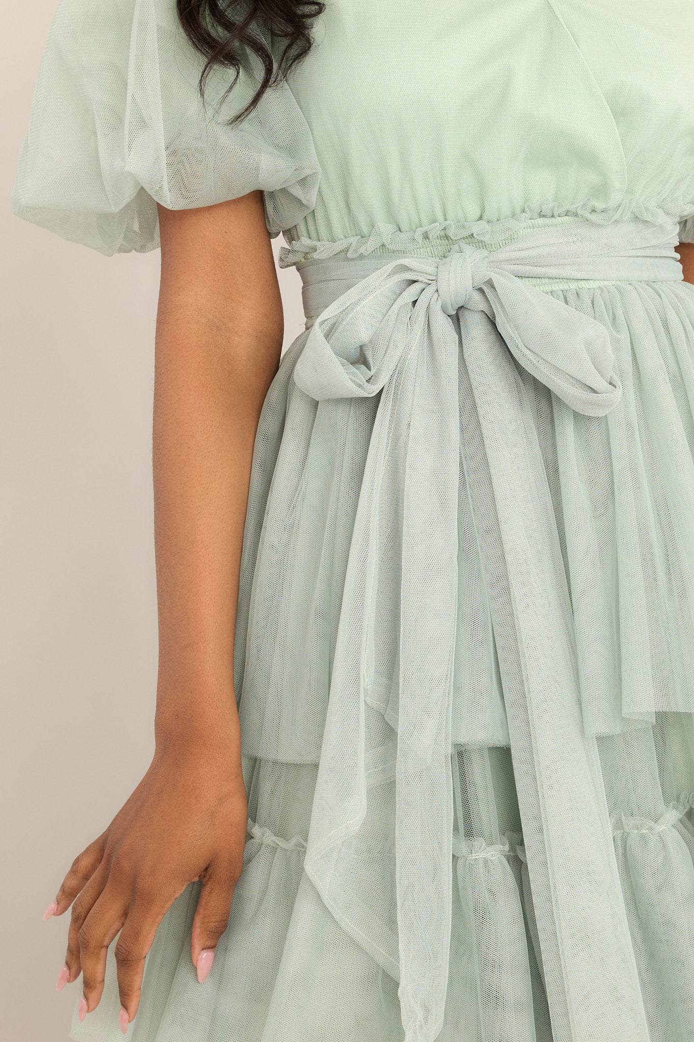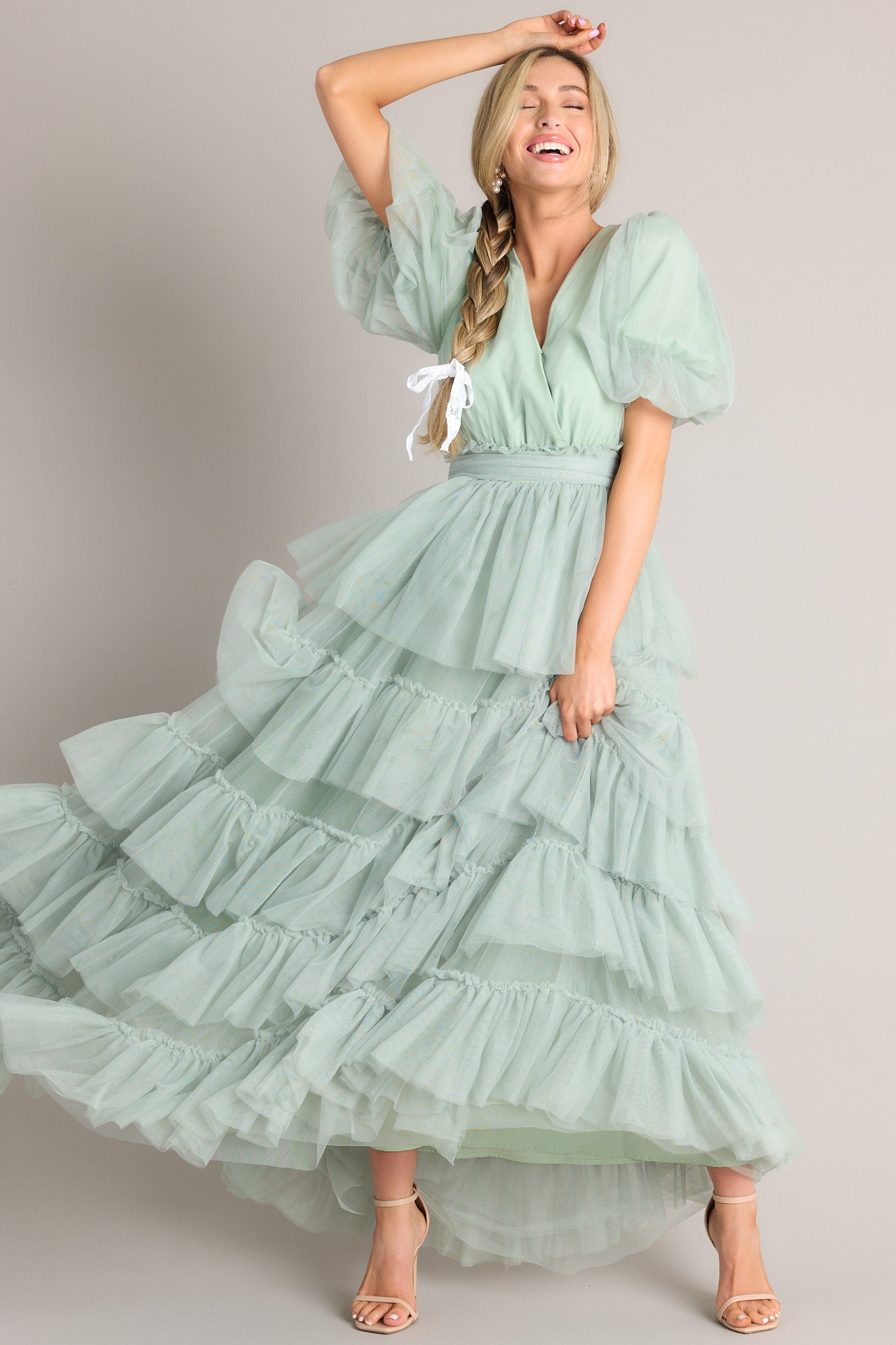A Beautiful Feeling Seafoam Tiered Tulle Maxi Dress