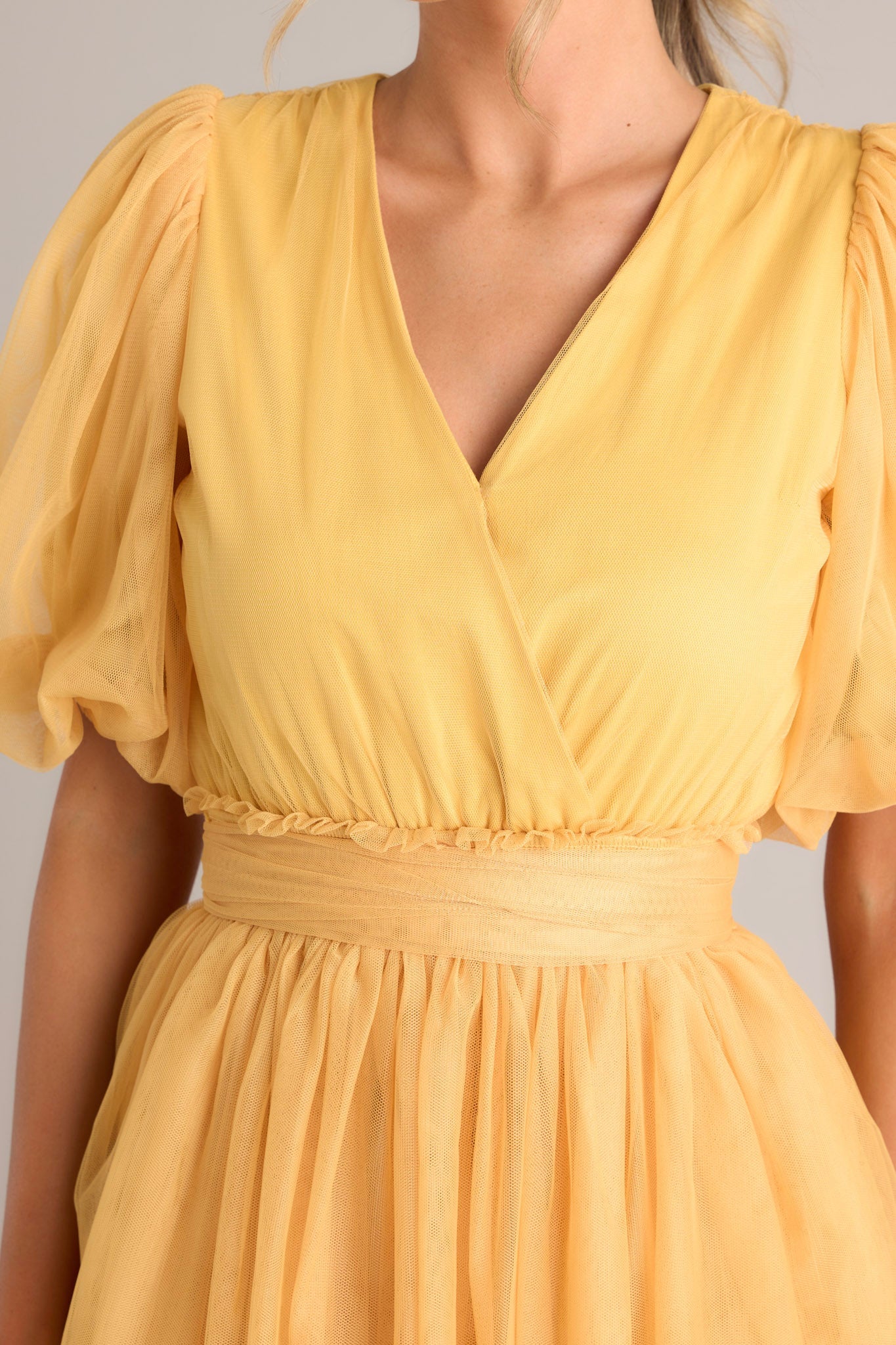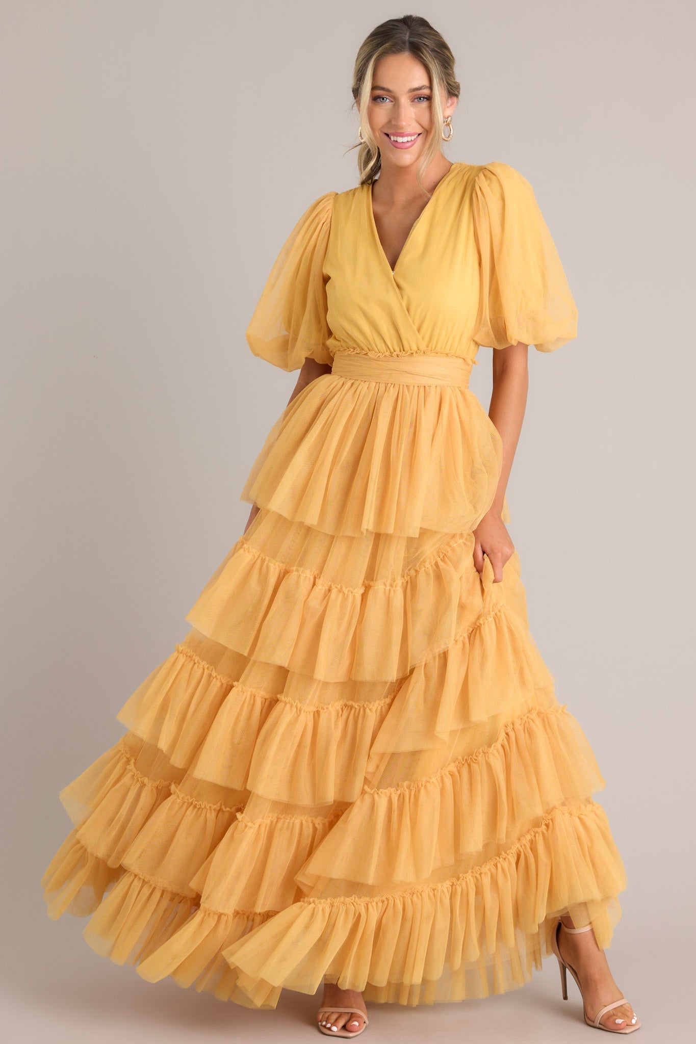 A Beautiful Feeling Yellow Tiered Tulle Maxi Dress