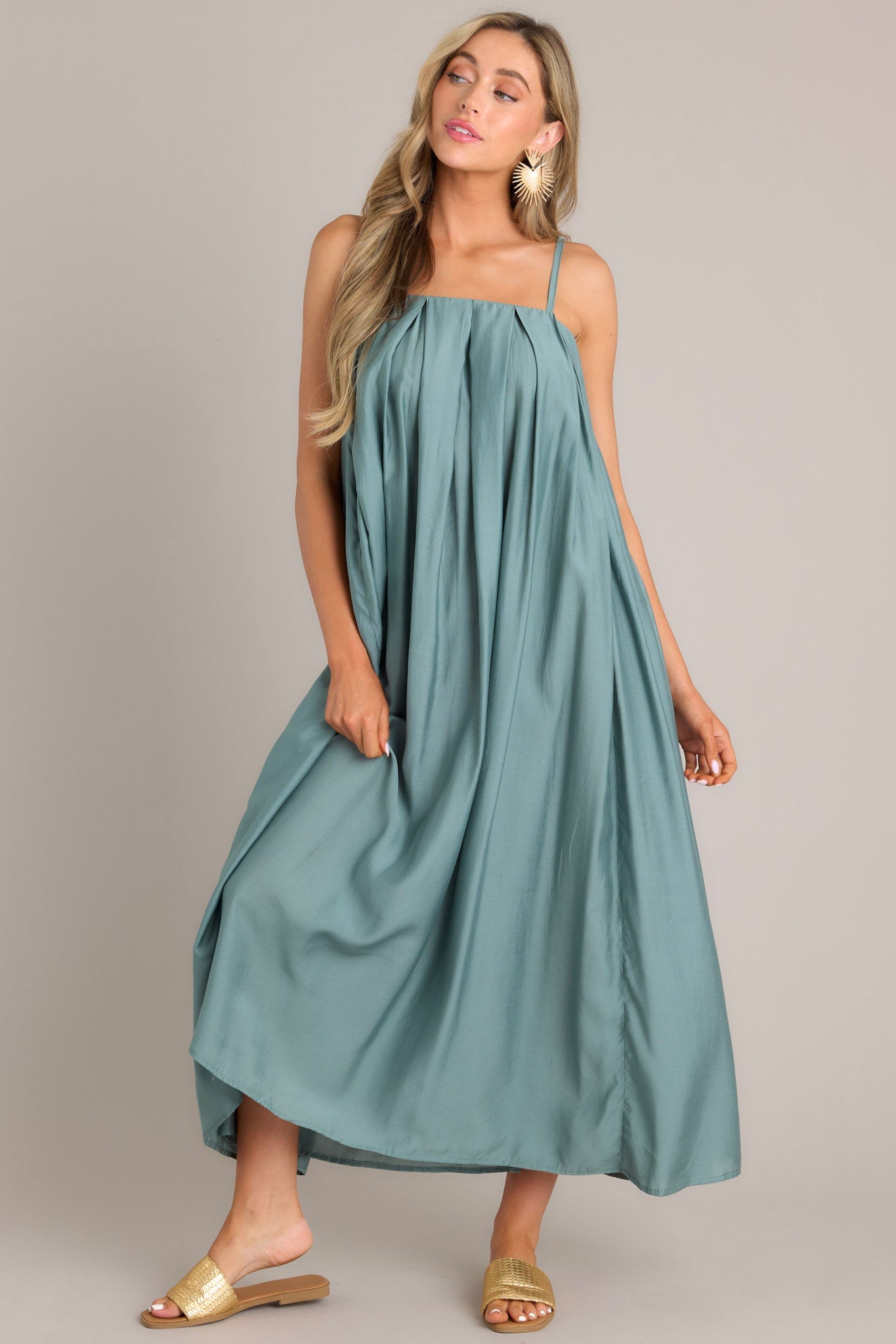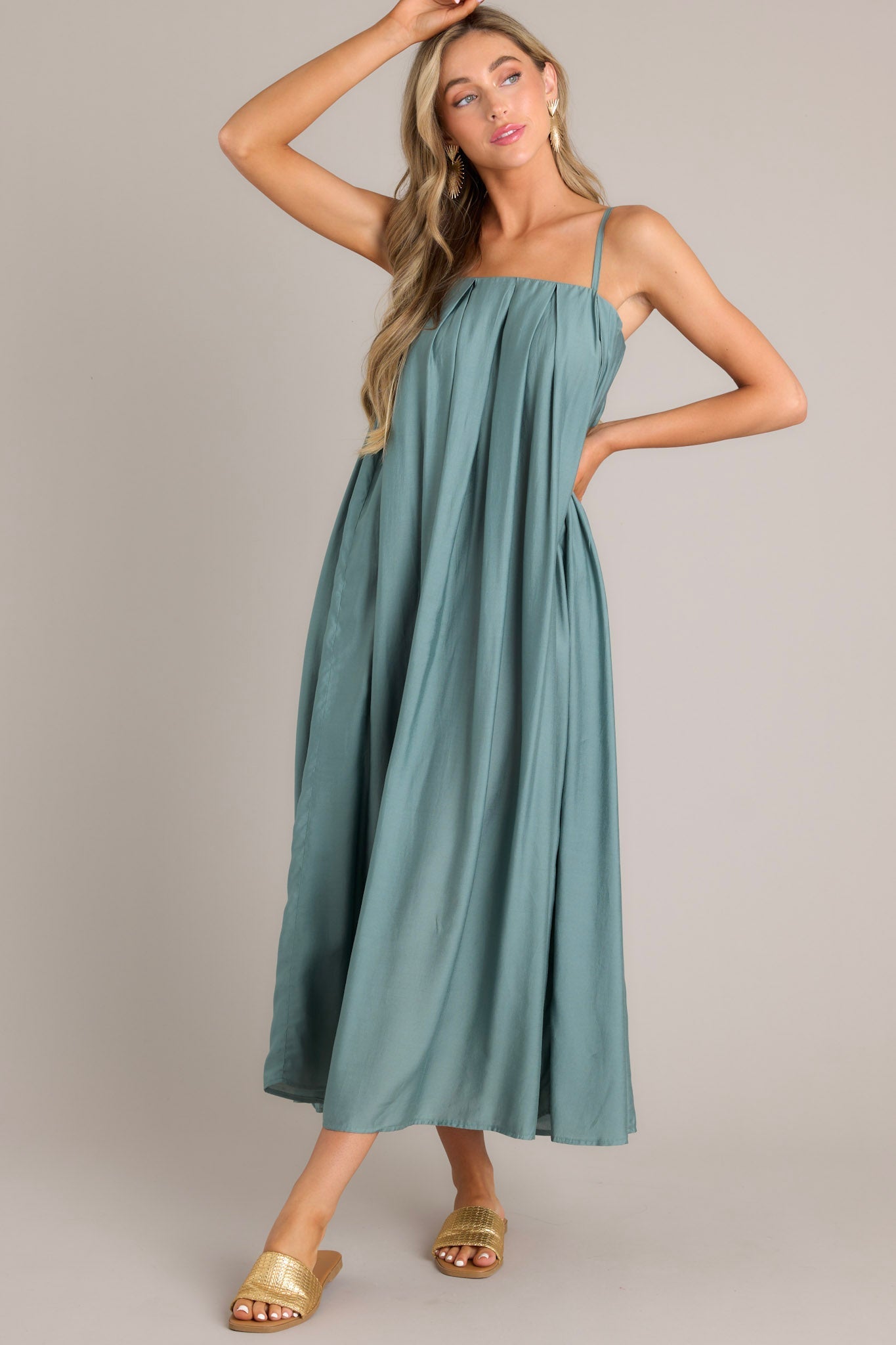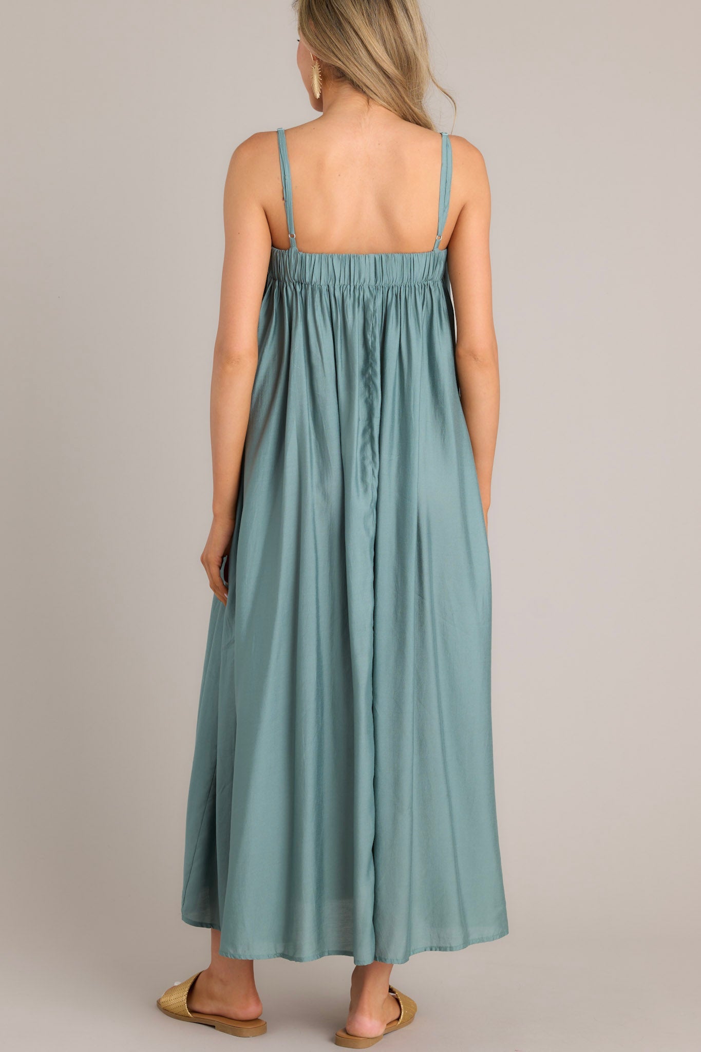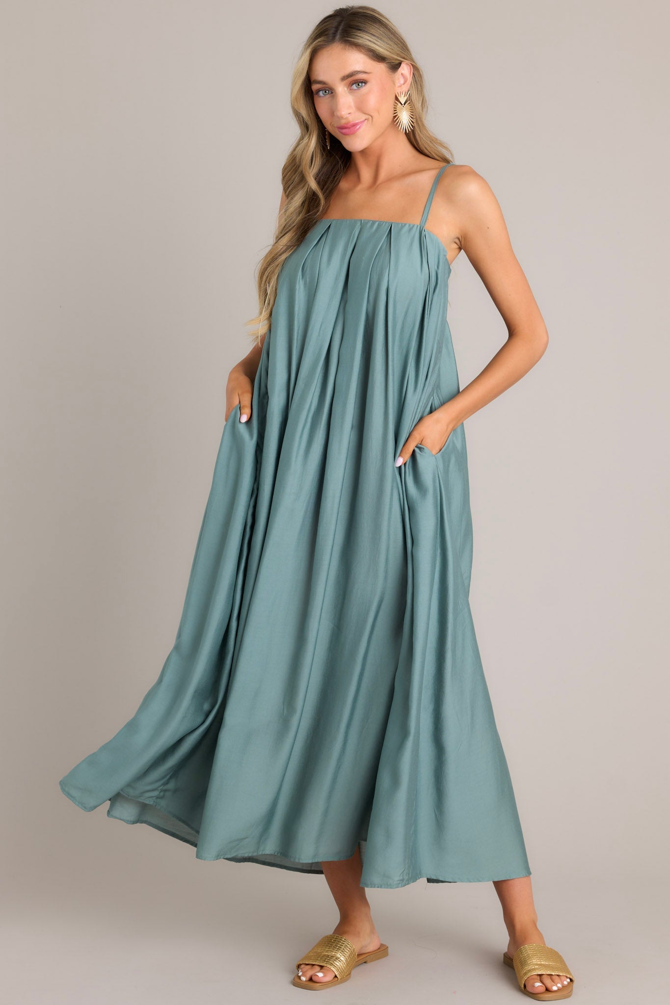 Need the perfect dress for your next summer event? Look no further than I Need Somebody Sage Green Maxi Dress! With its flowy design and stunning color, you'll be sure to turn heads. Perfect for a day out or a night on the town, this dress will have you feeling confident and stylish. So why wait? Grab yours now! This dress features a square neckline with an elastic insert in the back, thin adjustable straps, and functional pockets.