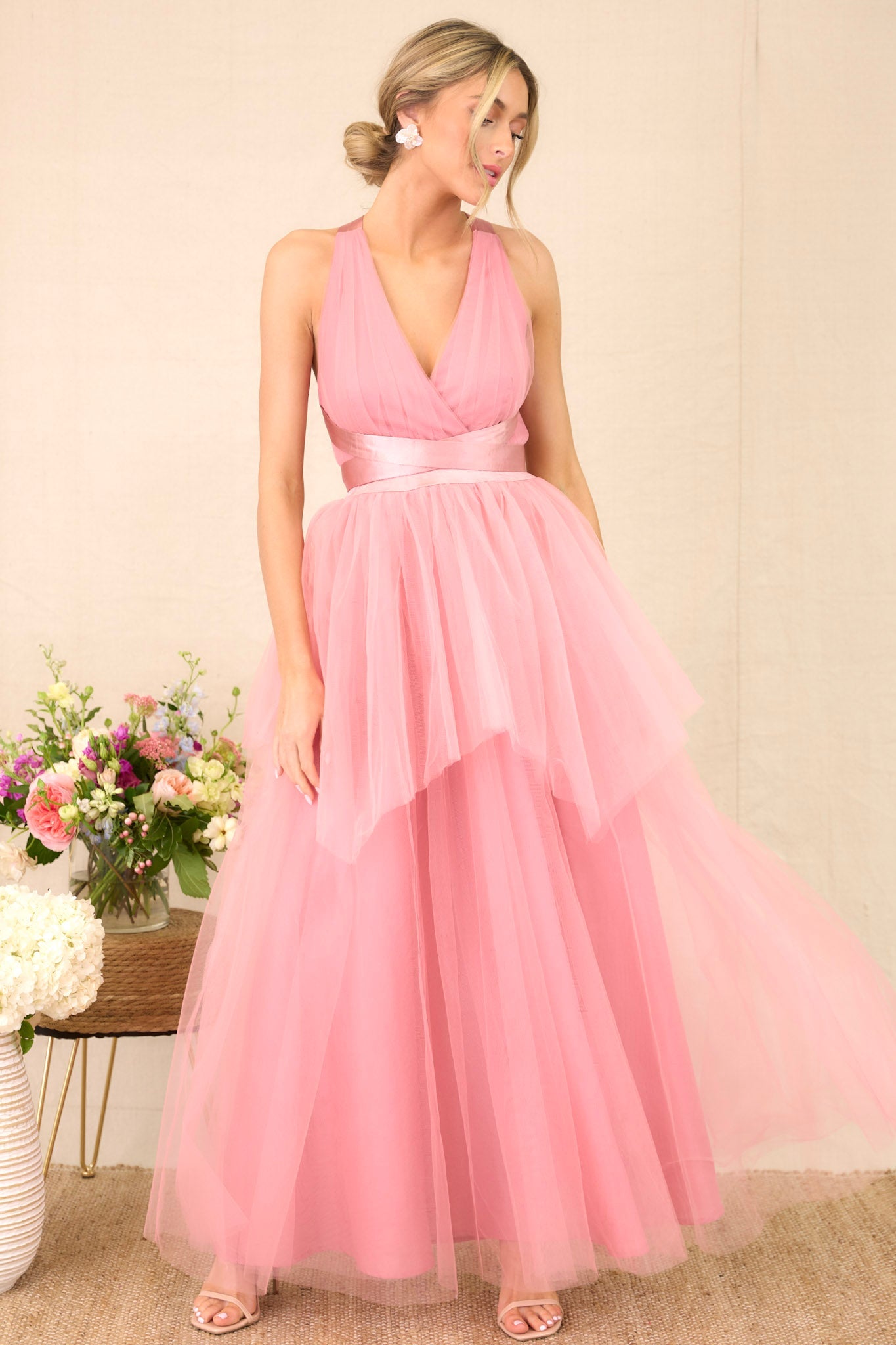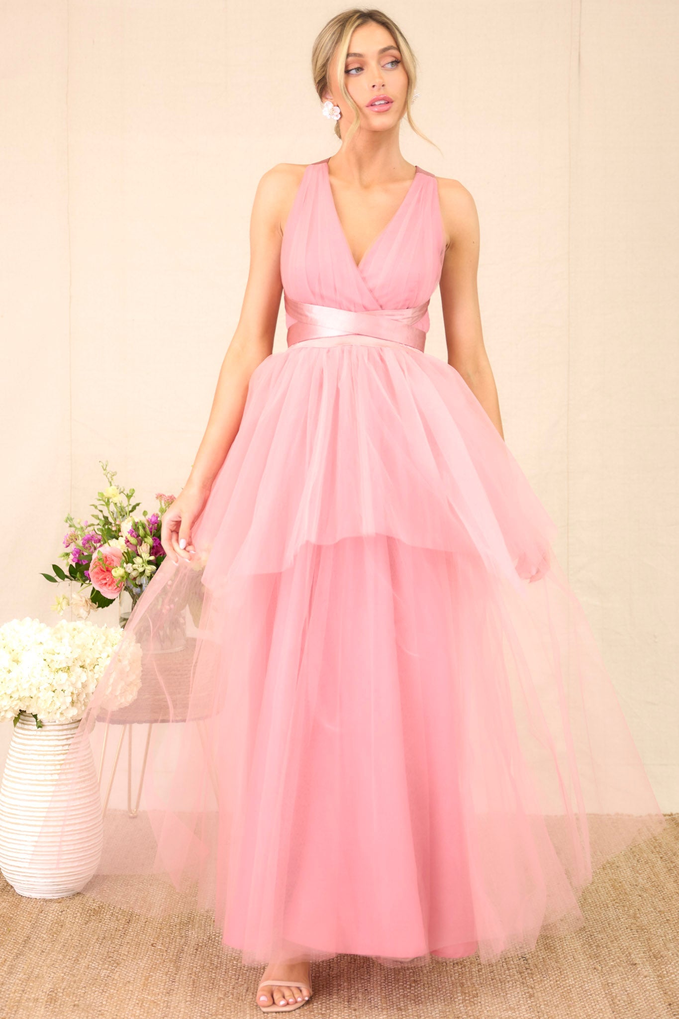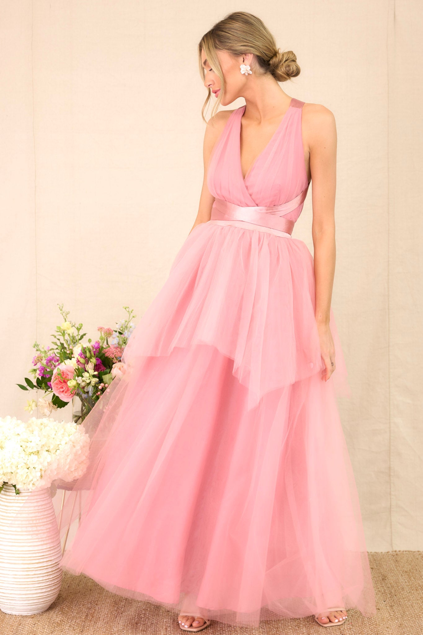 Even Cinderella would be inspired by you in this romantic rose maxi dress! All of your Graceful Movements in this gorgeous gown, remind us of the most beautiful fairy-tale...the one where you, live happily ever after! This dress features a deep v-neckline, self-tie straps that wrap around the waist, a zipper closure in the back, and a textured layered skirt.