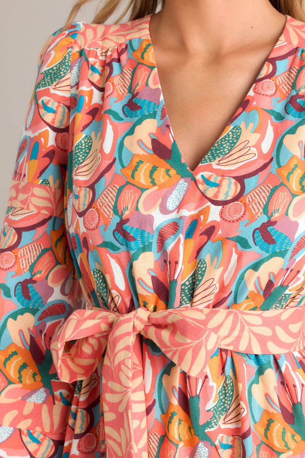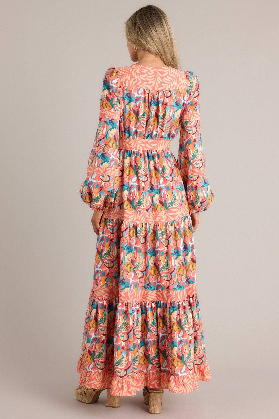 Step out in style wearing this Just Follow Me Maxi Dress! This stunning dress is adorned with a beautiful coral floral print, perfect for making a statement in any season. It's sure to turn heads, so don't be surprised if you're the belle of the ball! This dress features a v-neckline, long sleeves with elastic cuffs, an elastic waistband, an optional self-tie belt, and a long, flowy skirt.